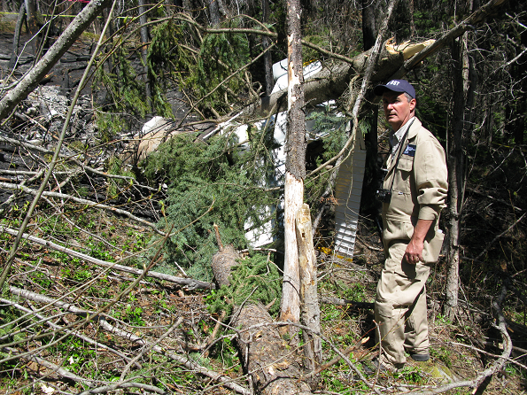 The privately operated de Havilland DHC-2 MK 1 amphibious floatplane (registration C-GCZA, serial number 1667) departed Okanagan Lake, near Kelowna, for a daytime flight under visual flight rules to Pitt Meadows, British Columbia, with the pilot and 2 passengers on board. While enroute, the aircraft struck trees and collided with terrain close to and 100 feet below the level of Highway 97C, near the Brenda Mines tailings hill. At 1850 Pacific Daylight Time, a brief 406-megahertz emergency-locator-transmitter signal was detected, which identified the aircraft; however, a location could not be determined. Most of the aircraft was consumed by a post-impact fire. The 3 occupants were fatally injured.