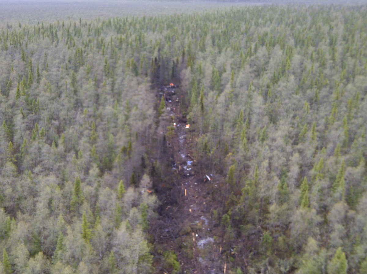 On 31 May 2013, at approximately 0011 Eastern Daylight Time, the Sikorsky S-76A helicopter (registration C-GIMY, serial number 760055), operated as Lifeflight 8, departed at night from Runway 06 at the Moosonee Airport, Ontario, on a visual flight rules flight to the Attawapiskat Airport, Ontario, with 2 pilots and 2 paramedics on board. As the helicopter climbed through 300 feet above the ground toward its planned cruising altitude of 1000 feet above sea level, the pilot flying commenced a left-hand turn toward the Attawapiskat Airport, approximately 119 nautical miles to the northwest of the Moosonee Airport. Twenty-three seconds later, the helicopter impacted trees and then struck the ground in an area of dense bush and swampy terrain. The aircraft was destroyed by impact forces and the ensuing post-crash fire. The helicopter’s satellite tracking system reported a takeoff message and then went inactive. The search-and-rescue satellite system did not detect a signal from the emergency locator transmitter. At approximately 0543, a search-and-rescue aircraft located the crash site approximately 1 nautical mile northeast of Runway 06, and deployed search-and-rescue technicians. However, there were no survivors.