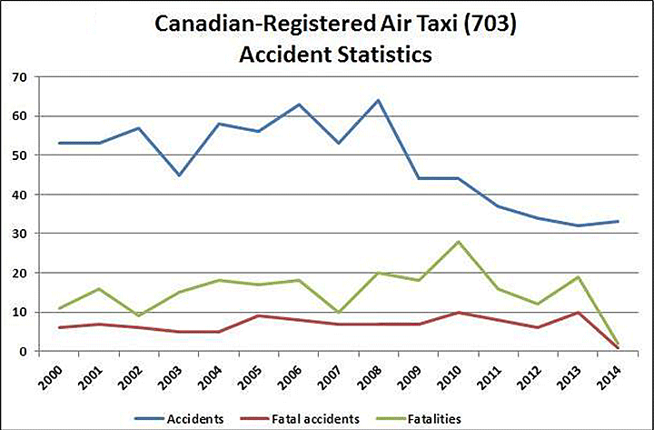 The air taxi sector of the Canadian aviation industry which is regulated by Canadian Aviation Regulations (CARs) Part 703 has seen 229 deaths over the last 15 years. These deaths represent 62% of all commercial aviation fatalities. TSB investigation reports have repeatedly drawn attention to critical safety issues that contribute to these accidents in these types of operations. In spite of this, the air taxi sector continues to have the highest number of commercial aviation accidents and fatalities. The TSB wants to identify and communicate the underlying systemic safety issues that need to be addressed so that action can be taken to reduce the risks that persist in air taxi operations across Canada. At the conclusion of the SII, the Board may make recommendations to address any remaining systemic deficiencies.