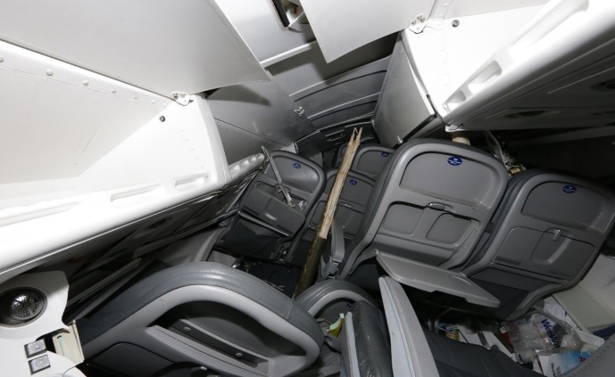 The reduced survivable space between the floor above the main landing gear and the collapsed upper fuselage caused crushing injuries, such as major head, body, and leg trauma, to passengers in the middle-forward left section of the aircraft. Of the 3 passengers in this area, 2 experienced, serious life-changing injuries, and 1 passenger subsequently died.