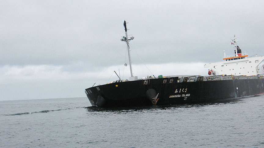 On 14 July 2014, the bulk carrier AMAKUSA ISLAND grounded south of Gull Rocks when the vessel departed Prince Rupert, BC. The vessel started taking on water. No pollution was reported. The TSB deployed a team of investigators.