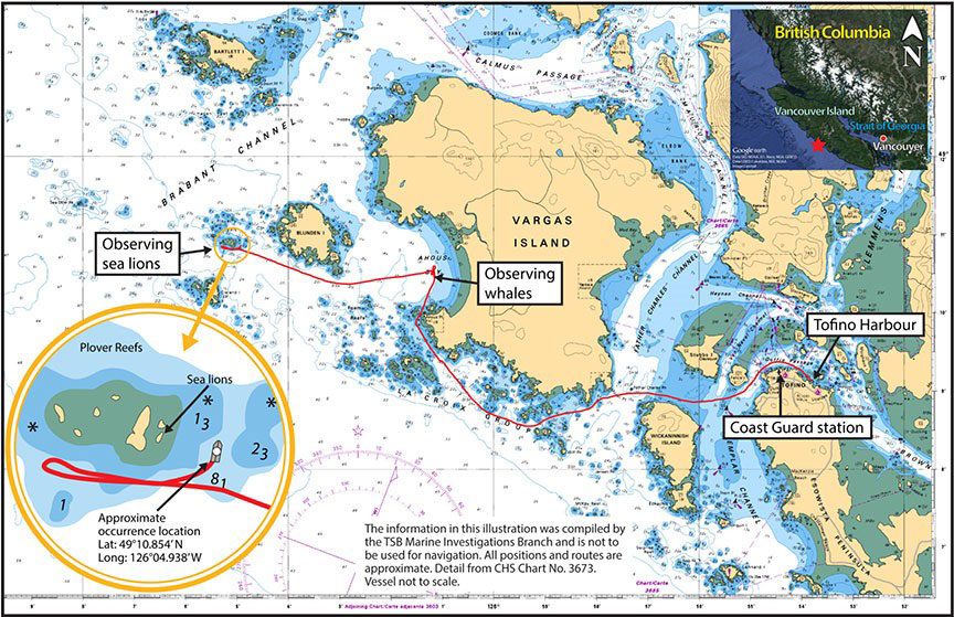 On 25 October 2015, the Leviathan II was on a whale-watching excursion in the Plover Reefs area of Clayoquot Sound, with 27 people on board. The sea conditions in the area were favourable to the formation of breaking waves. As the vessel was leaving the area, a large wave approached the vessel from the starboard quarter. The master became aware of the wave and tried to turn the vessel to minimize the impact, but the wave struck the vessel before these actions could be effective. The vessel broached and rapidly capsized following the impact of the wave, resulting in passengers and crew being thrown into the cold seawater without flotation aids. The subsequent rescue operation recovered 21 survivors, which included 18 passengers and 3 crewmembers. There were six fatalities.