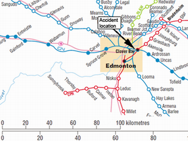 Transportation Safety Board of Canada deploys a team to investigate a rail accident near Edmonton, Alberta