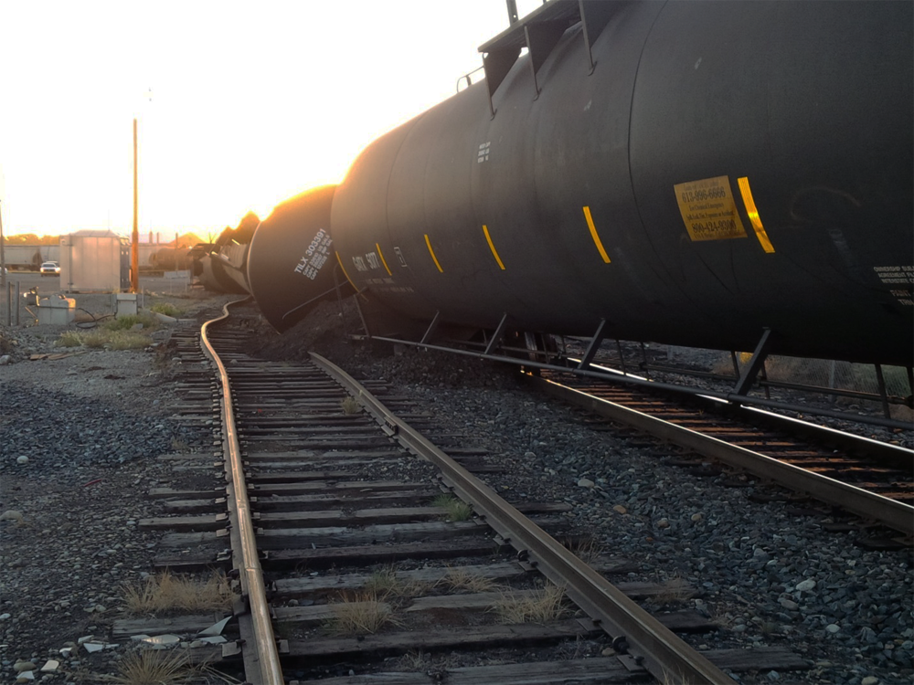 September 2013 train derailment in Calgary, Alberta resulted when wheels climbed over a railway switch point