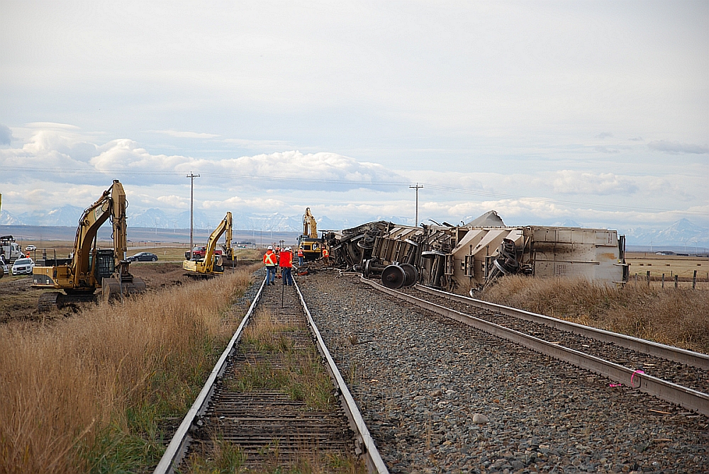 TSB deploys a team of investigators to the site of a CP train derailment in Pearce, Alberta