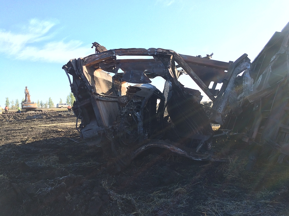 On , at approximately 1135 Central Standard Time, Canadian National Railway Company (CN) freight train A40541-05 was proceeding westward on the CN Margo Subdivision when it derailed 26 cars, including 6 tank cars loaded with dangerous goods, at Mile 74.58 near Clair, Saskatchewan. Two of the tank cars, which were loaded with petroleum distillates (UN 1268), released product that subsequently caught fire. As a precaution, approximately 50 residents within a two-mile radius were evacuated and Provincial Highway 5 was closed. Approximately 650 feet of track was destroyed. There were no injuries.