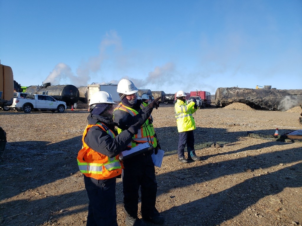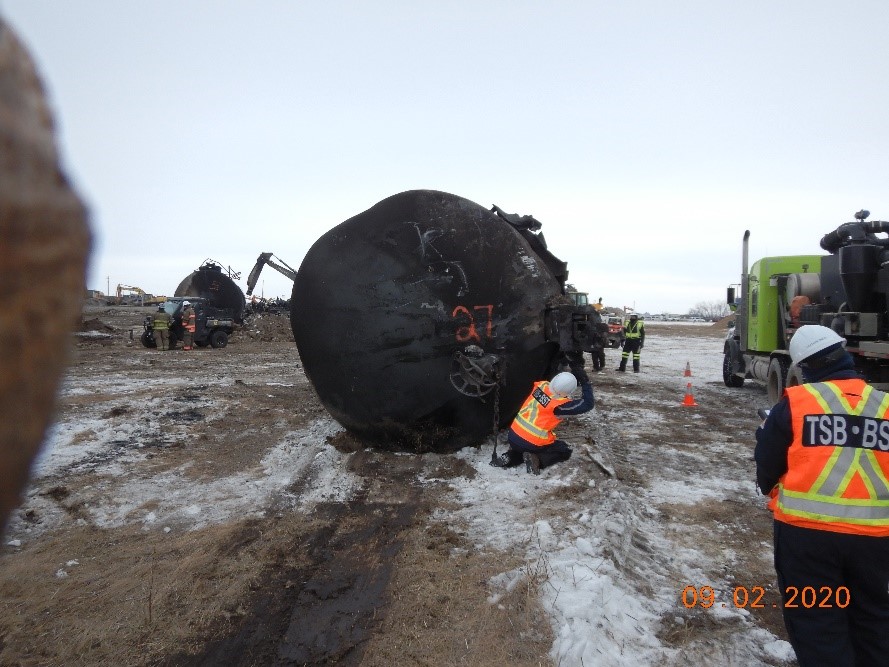 The investigation is currently in the field phase. Three TSB investigators are working alongside investigators from the US National Transportation Safety Board (NTSB) and the tank car manufacturer (Trinity) to gather information from the occurrence site.