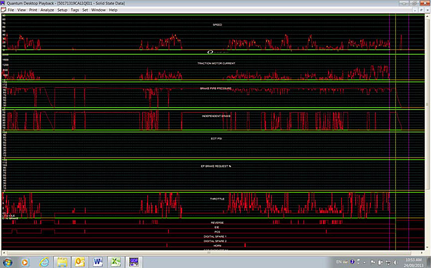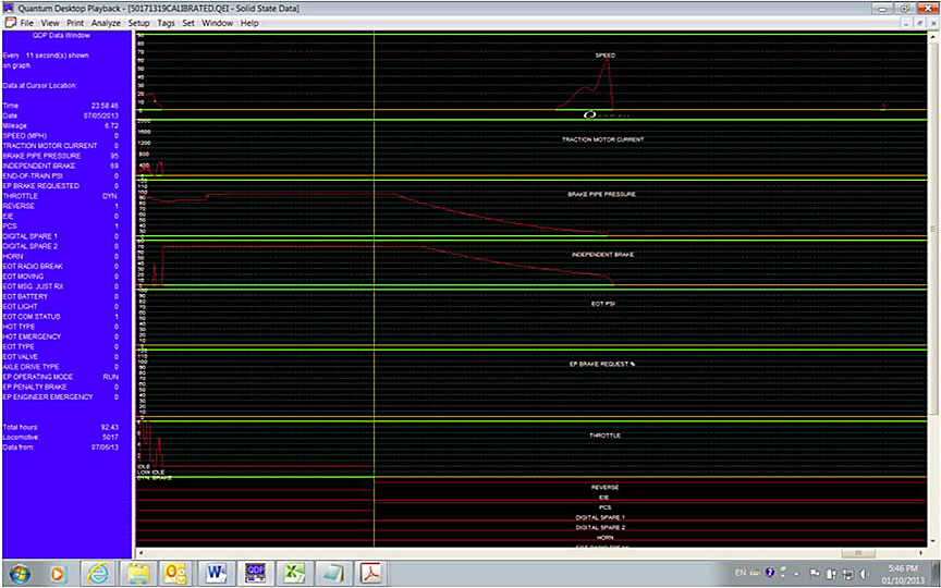 Image of graphic LER data from engine shutdown to first stop after derailment