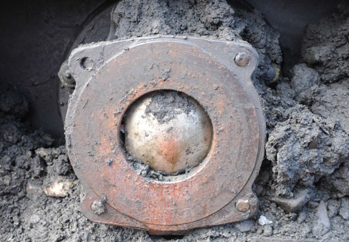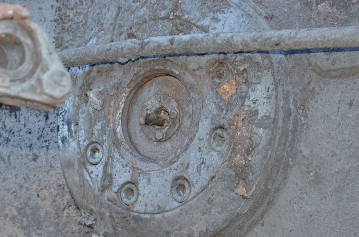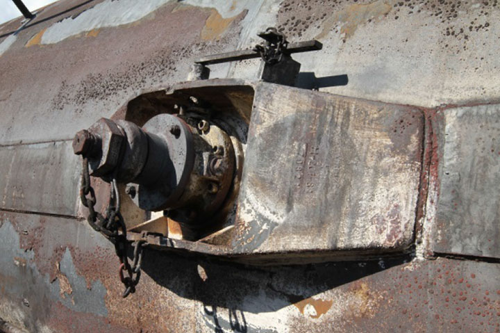 | Bottom outlet valve | The cast skid was unremarkable. The BOV adaptor had sheared off at the flange, exposing a closed ball valve. The handle was secured in the closed position. Signs of light seepage were noted on the ball valve. |