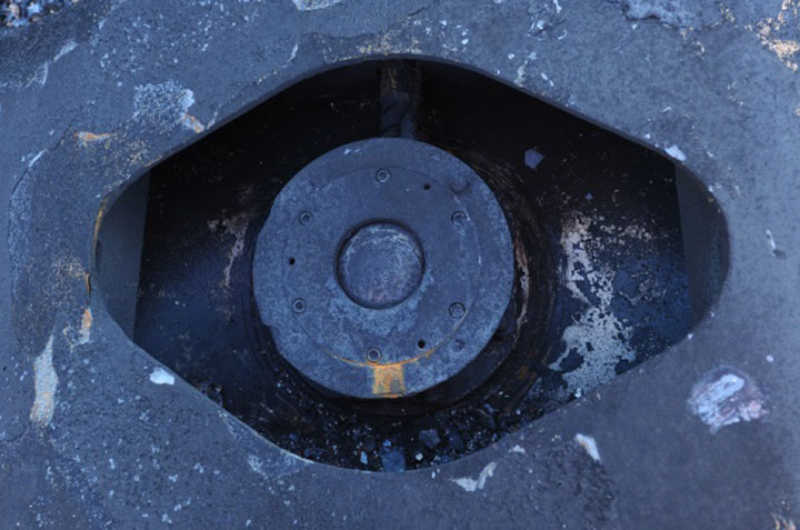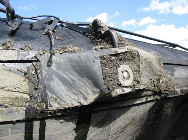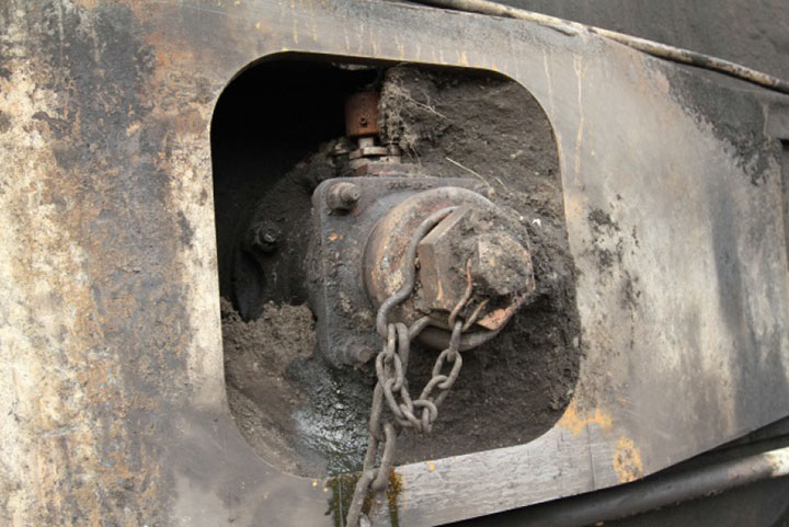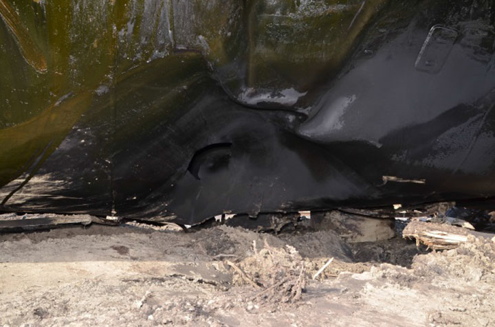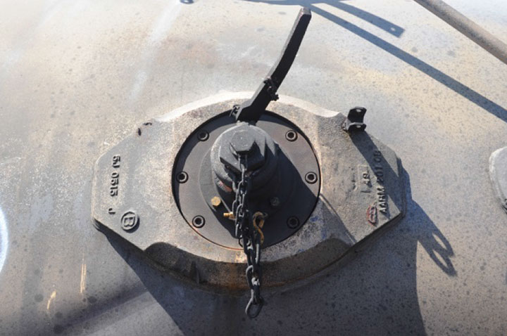 | Manway | The manway was closed with no impact damage. A large amount of product residue was noted in the gap between the cover and manway nozzle indicating that the manway had released product. |