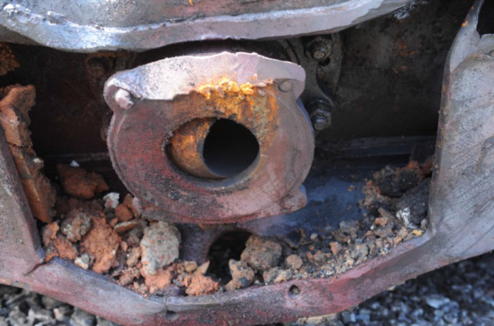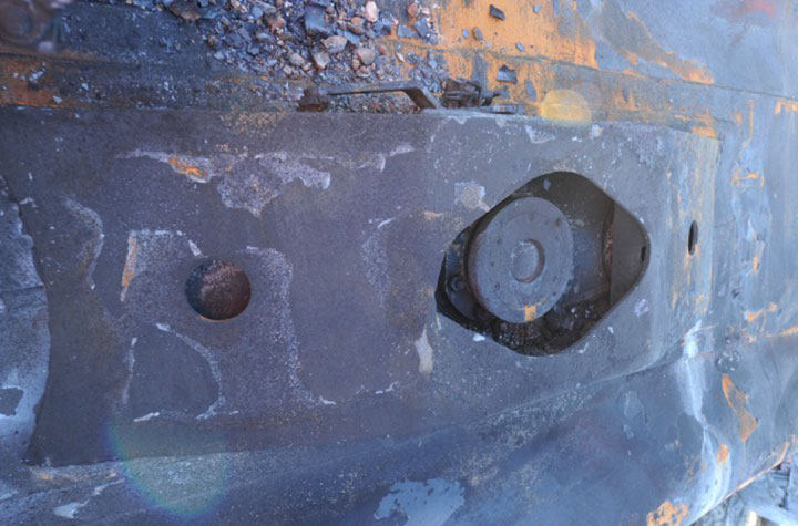 | Extent of fire damage | The car was oxidized with red discolouration in the area around the puncture in the B end. |