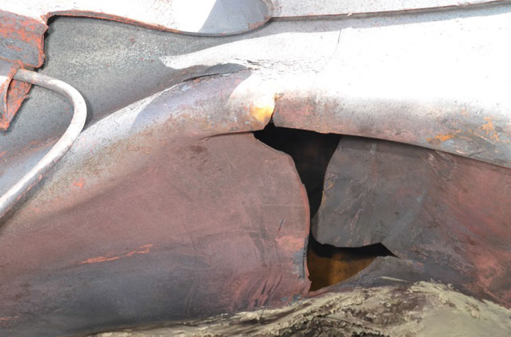 | Top fittings | The housing had separated at the hinge and was missing. The top fitting nozzles were sheared off. |