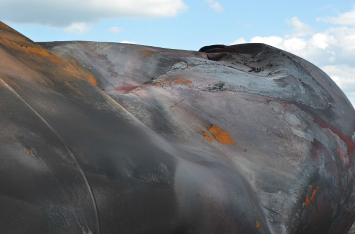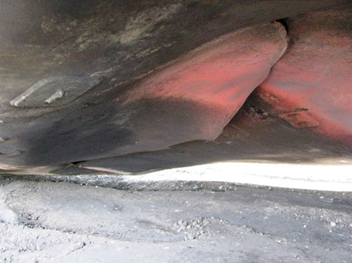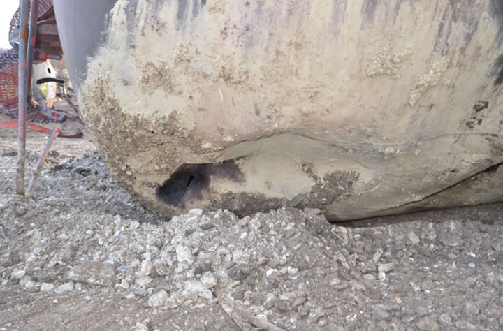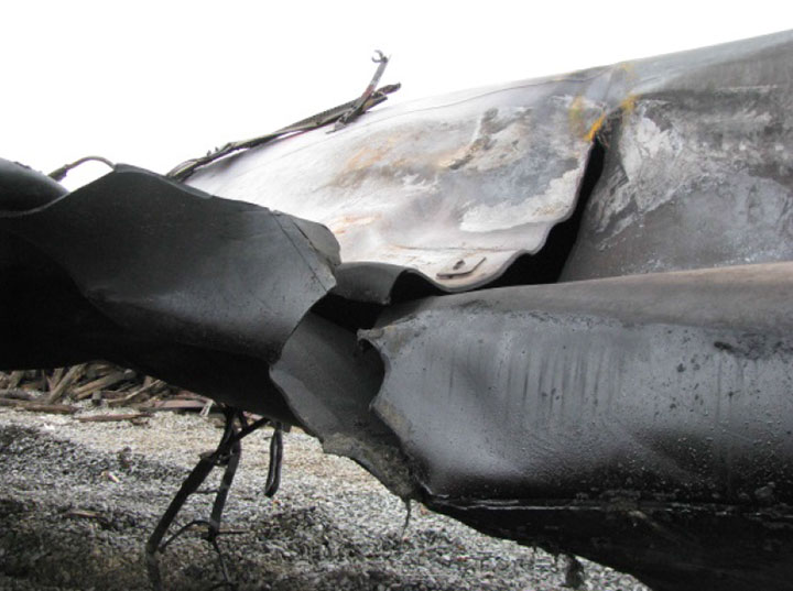 | Shell | The aerial views and in-situ photos available show the shell was compressed inward on both side between the top fittings and the A end with a longitudinal buckle on the top. It was also compressed inward on the right side between the top fittings and B end. |