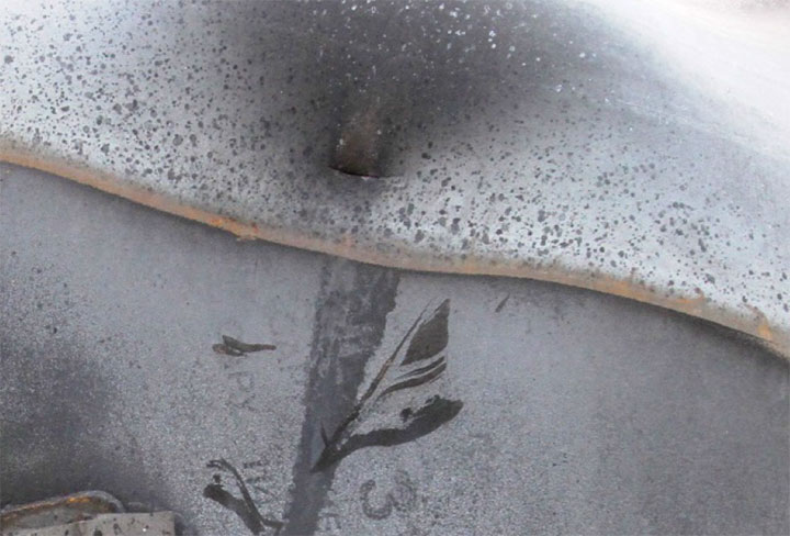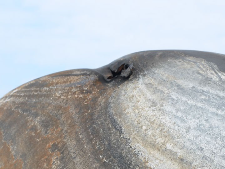 | Shell | The shell contained a deep angular dent on the top-left near the B end. There was a shallow dent on the top-left near the head-to-shell junction at the A end. |