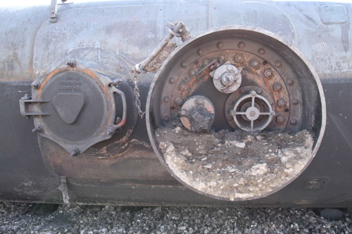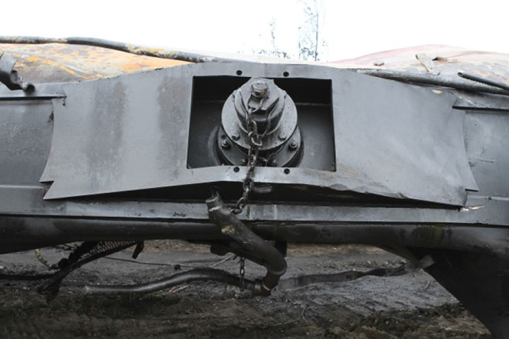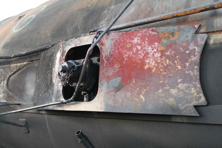 | Manway | The manway cover was closed when the derailed car came to rest. It was subsequently opened during recovery operations. None of the bolts were impact damaged. |