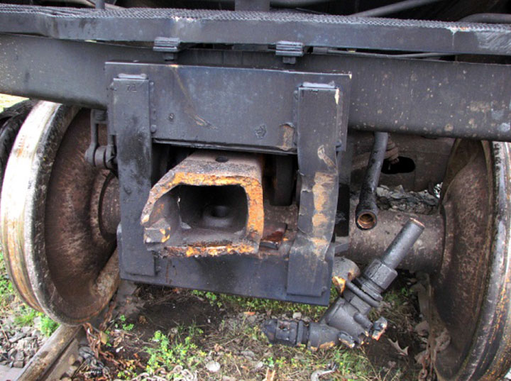 | Stub sills and couplers | Both stub sills were broken and bent to the right. Both couplers were almost completely separated and hanging from the draft key. |