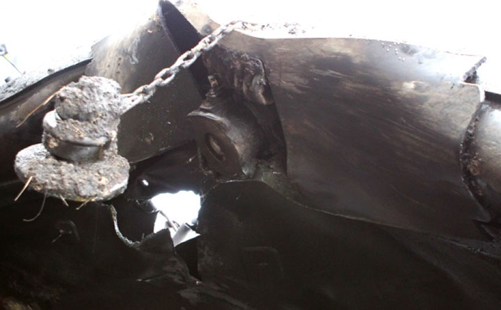 | Manway | The manway cover was open and all 8 bolts were released with 1 bolt slightly bent. The manway cover was closed on aerial photographs confirming it was opened during recovery operations. |