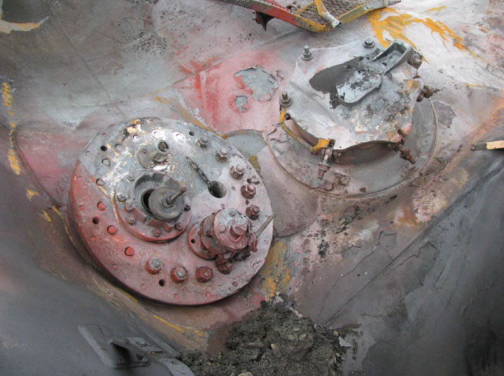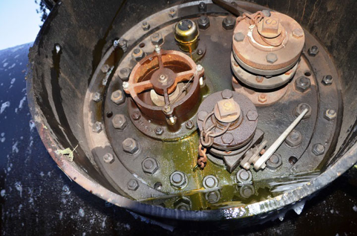 | Manway | The manway cover was open with all 6 bolts intact. It was likely opened for product recovery. |