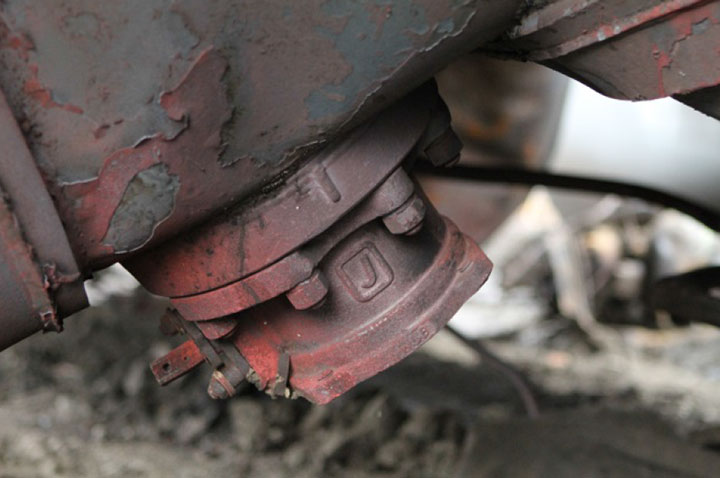 | Top fittings | The cover of the housing was askew and deformed. It was found in the closed position with the pin unsecured. There was extensive fire damage on the cover and housing. |
