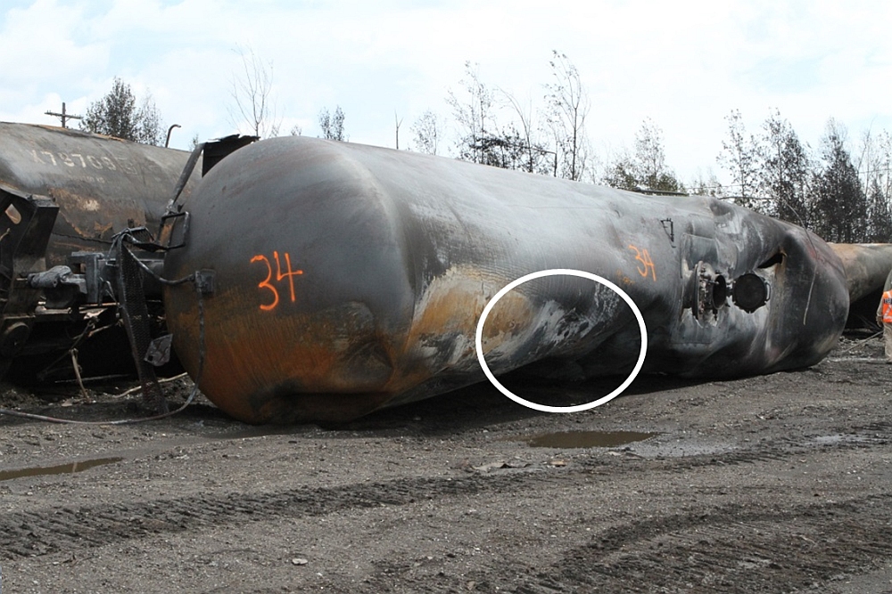 On 06 July 2013, a unit train carrying petroleum crude oil operated by Montreal, Maine & Atlantic Railway derailed in Lac-Mégantic, Quebec. Numerous tank cars ruptured and a fire ensued. The ambient air temperature at the time of the derailment was reported to be around 21 °C.