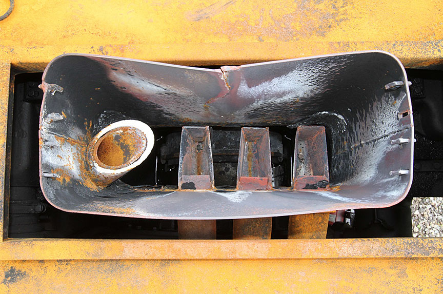 Image of rust showing where fire was concentrated around the cracked exhaust stack