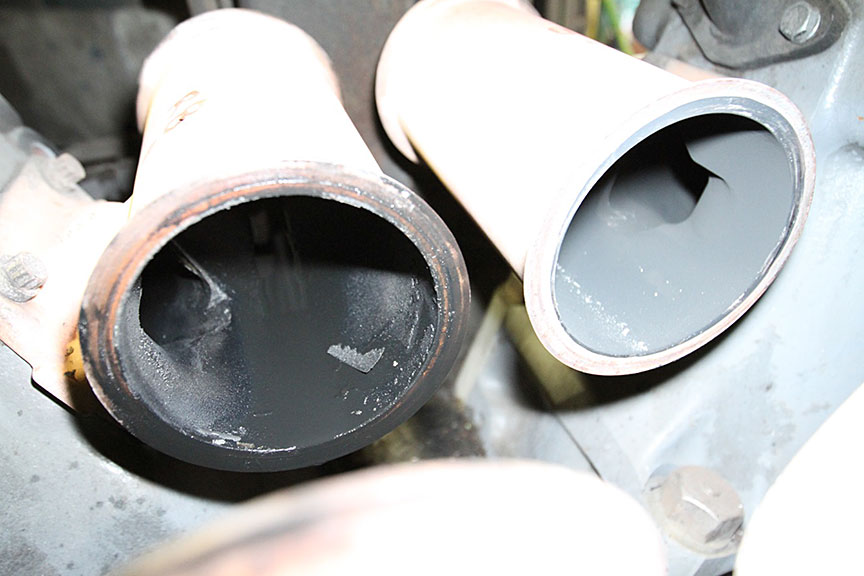 Figure 10. Exhaust manifold bodies for cylinders L1 and R1 showing oil buildup