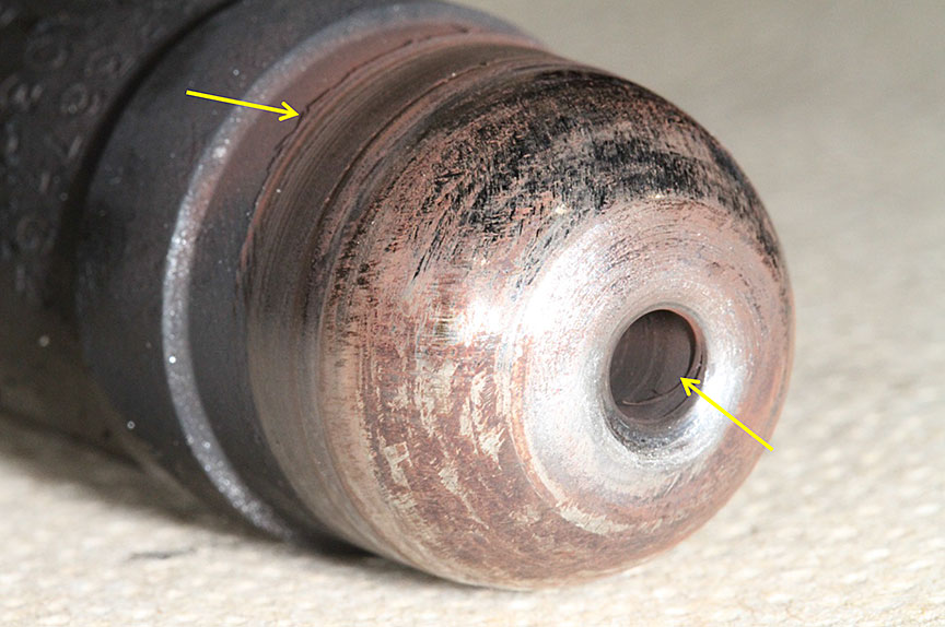 Figure 22. Exhaust valve head jammed in exhaust port.