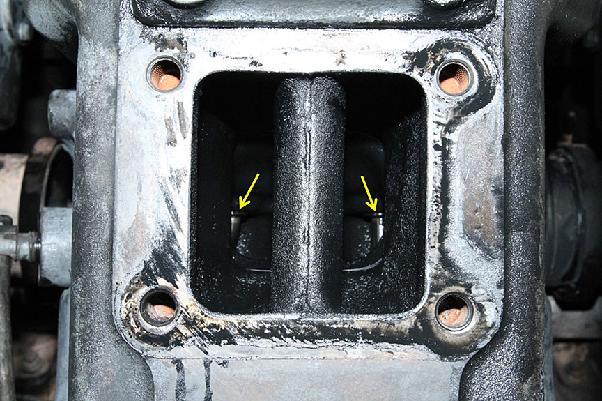 Figure 17. Intake port for PA R5 showing bent valve stems (arrowed)
