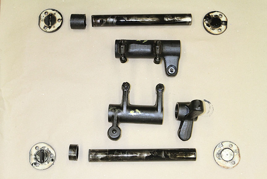 Figure 23. Rockers and shafts from PA R5. Note pasty oil residue on shafts (arrowed).