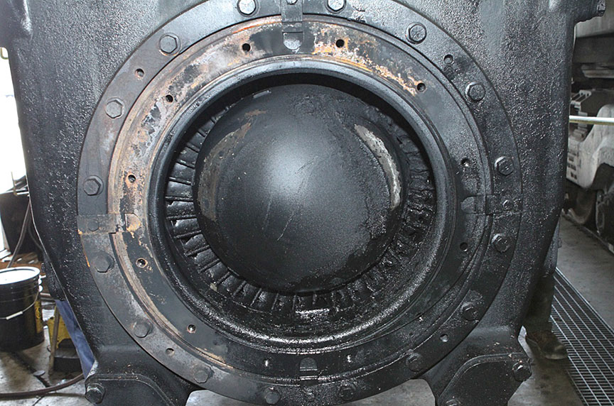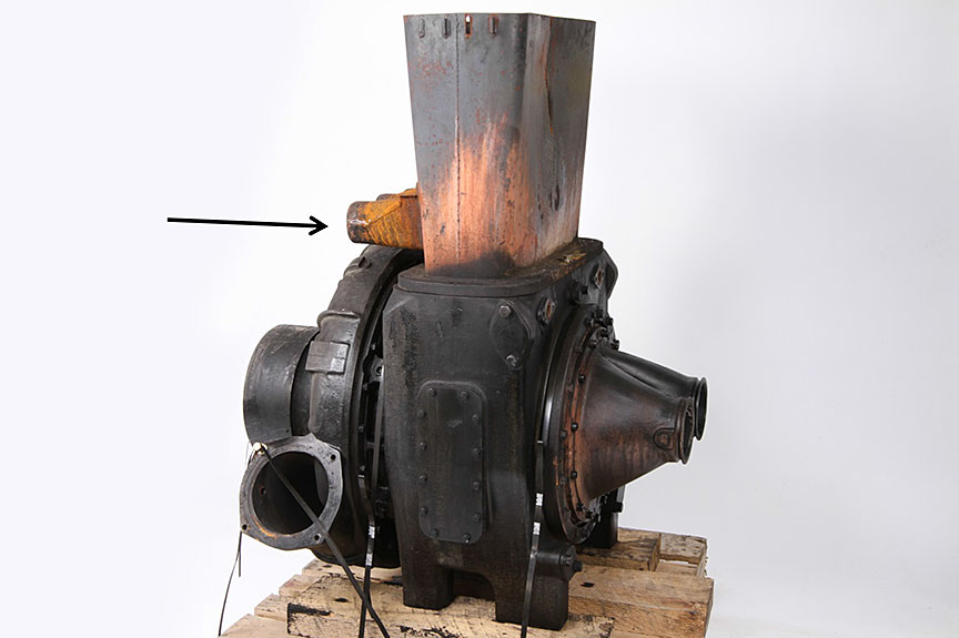 Figure 27. Turbocharger being removed from MMA 5017. Note buildup of coked oil.