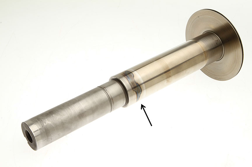 Figure 34. Turbocharger shaft showing heat damage at compressor bearing journal (arrowed).