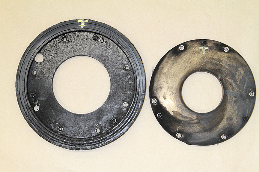 Figure 24. Pistons R6 (left) and R4 (right) showing crown colour and condition