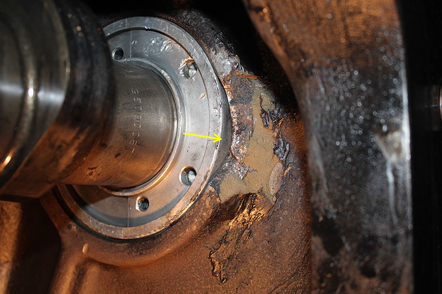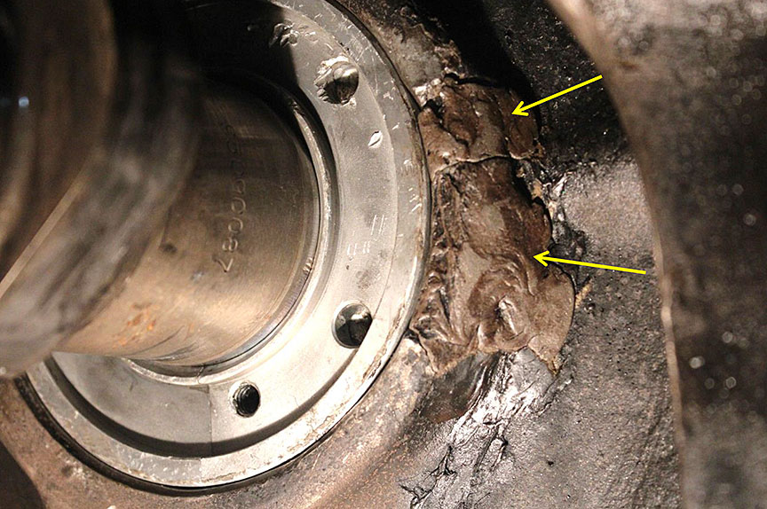 Figure 36. R4/R5 cam bearing bore showing previous repair (arrowed).