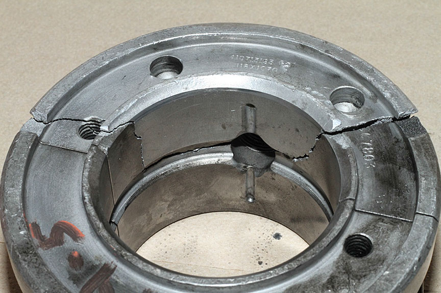 Figure 42. Internal view of subject cam bearing showing location of fracture