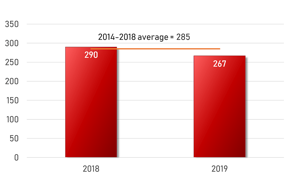 There were 267 marine accidents reported to the TSB in 2019, below the 2018 total of 290 and below the 5-year average of 285. Although the number of fishing vessels involved in accidents was lower than the previous year, 6 of the 11 fatal marine accidents and 10 of the 17 marine fatalities were related to the commercial fishing industry. Commercial fishing safety has been on the TSB Watchlist since its inception in 2010. Clearly, more still needs to be done to improve safety in this industry.