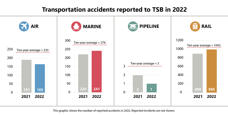 Transportation Safety Board of Canada releases annual transportation occurrence statistics from 2022