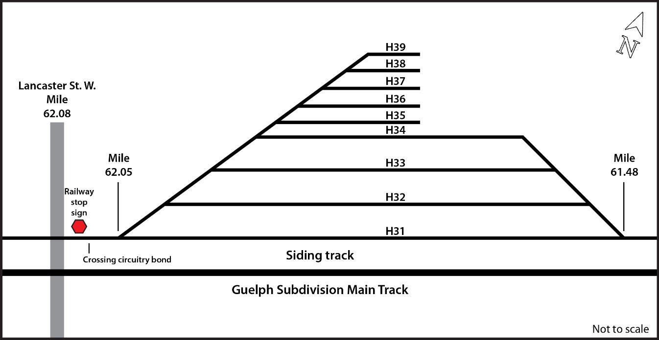 Figure 1. Schematic of Canadian National Railway Company’s Kitchener Yard near the Lancaster Street West crossing (Source: TSB)