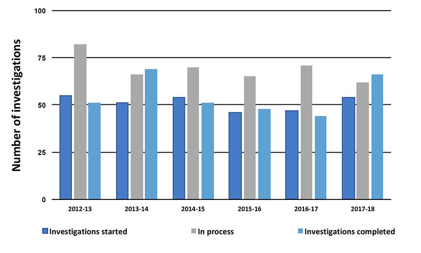 | Investigations started | 18 | 17 | 0 | 19 | 54 |