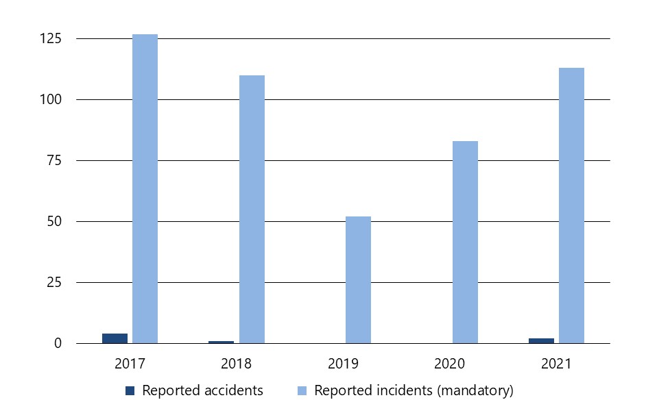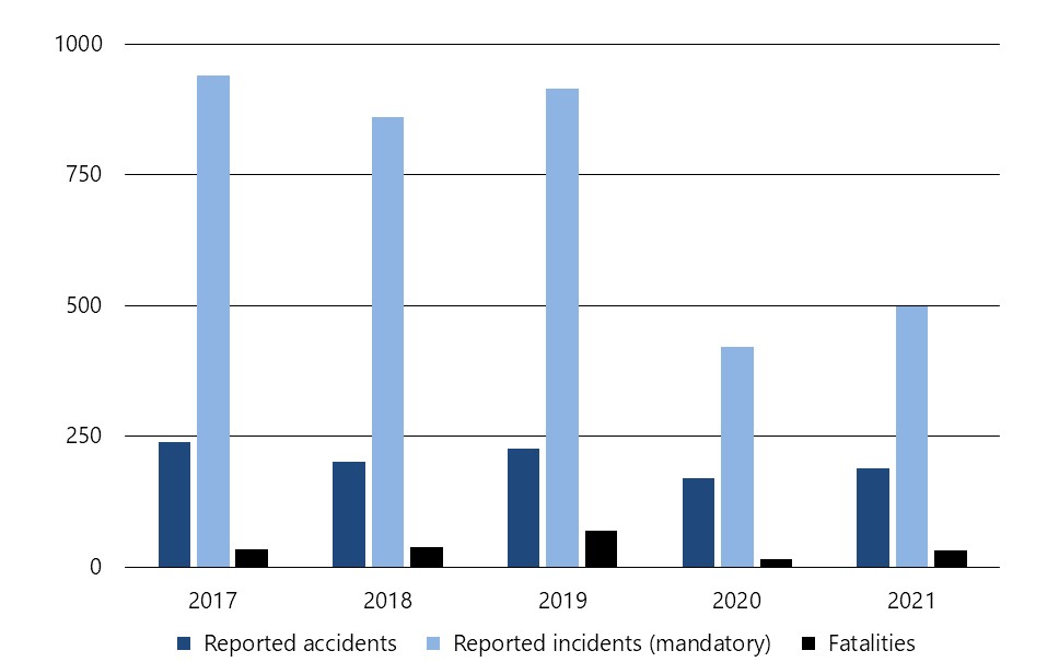 | Reported accidents | 240 | 201 | 227 | 170 | 190 |