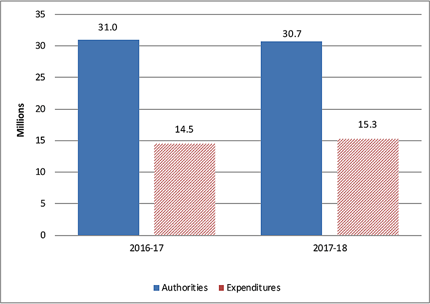 The TSB received $29,417,000 in funding through the Main Estimates. During the second quarter, the TSB received its operating budget carry forward (OBCF) from 2016-17 which represents an increase in authorities of $1,309,000. The TSB has additional statutory authorities totaling $19,000 at the end of the second quarter generated by proceeds from the disposal of surplus Crown assets and its authority to respend revenues as a departmental corporation.