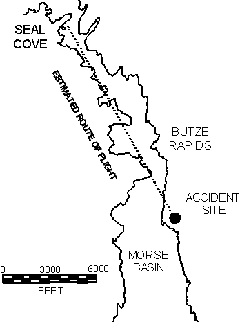 Suitable areas for water landing in the event of an emergency are available from Seal Cove to the accident site, with the exception of Butze Rapids, which is narrow and has a strong, variable tidal current.