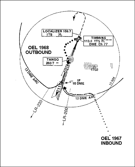 When OEL 1968 taxied for departure from runway 21, the wind was still from the west but had increased to 10 knots with gusts to 20 knots. The crew advised the Timmins FSS that they would take off from runway 28. The change in the departure runway for OEL 1968 was passed to and approved by the ACC controller at 1022 EDT. After confirming with the crew of the inbound OEL 1967 that they planned to fly an ILS approach to runway 03 and advising them of the departing company traffic, the ACC controller released OEL 1968 for take-off at 1025 EDT. As OEL 1967 proceeded inbound at 5,000 feet asl, the ACC controller queried the crew if they planned to fly the arc approach for runway 03 or proceed directly to the VOR and then outbound. The crew of OEL 1967 responded that they planned to fly the arc and they were cleared to the 12 distance measuring equipment (DME) arc. When OEL 1967 reported on the 12 DME arc, the ACC controller advised OEL 1967 that OEL 1968 was departing and to report the lead radial which was the 200 degree Timmins VOR radial. OEL 1967 reported the lead radial at 1031 EDT, and, when OEL 1968 was queried by the ACC controller, they reported level at 4,000 feet asl on the 210 degree radial outbound at 5.5 DME. At 1032 EDT, the ACC controller then issued an approach clearance to OEL 1967 for a straight-in ILS approach for runway 03 and also cleared OEL 1968 to 17,000 feet asl. The aircraft were converging head on, in cloud, and approaching each other's altitude when their respective TCAS systems warned them of the impending risk of collision.