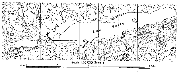 Boily Lake is oriented east-to-west and is about three miles long. At the west end of the lake, there is a valley between two hills. The valley curves to the left and eventually leads to another lake.