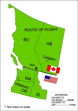 The purpose of the flight was to return company personnel to Hillsboro in their corporate aircraft after attending a business meeting in Calgary. The pilot received a weather briefing from Edmonton Flight Service Station (FSS) and filed an IFR flight plan with Springbank FSS. On filing the flight plan, he requested 15,000 feet asl direct to Battleground, Washington, then direct to Hillsboro, the destination. He reported that the estimated time en route (ETE) would be 3 hours and 15 minutes and that he had 4 hours and 30 minutes of fuel on board.