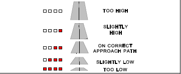 The runway is served by a type 3 PAPI, suitable for aircraft with an eye-to-wheel height of up to 45 feet (Boeing 747 and smaller). The PAPI consists of four light units in a wing bar, located on the left side of the runway, 1,307 feet from the threshold, and provides a 3° glide path to the touchdown zone. A pilot's on-slope indication is two white lights and two red lights visible. If four red lights are visible, the aircraft is too low.