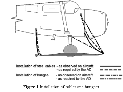 - Airworthiness Directive CF-80-18 relating to the installation of steel cables and bungees had not been complied with.