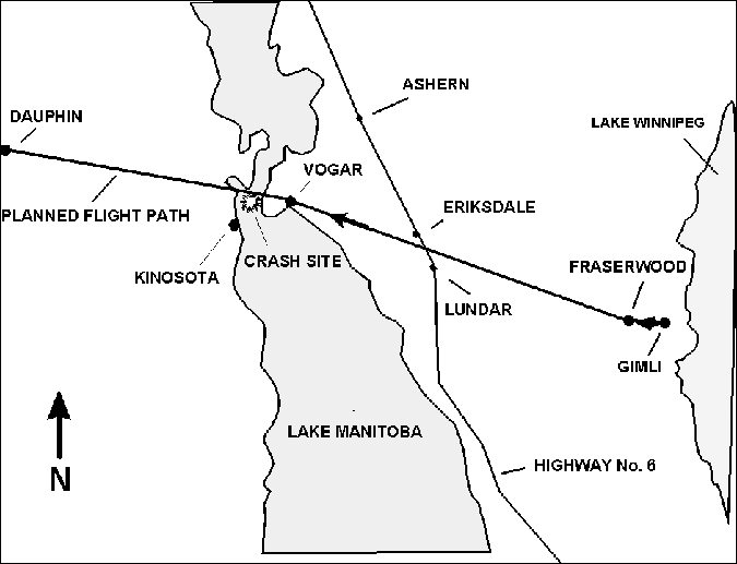 Distance along the planned route of flight from Gimli to the accident site: 69 nm