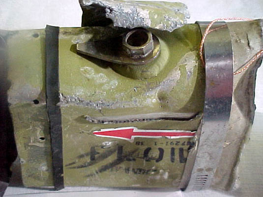 The aft tunnel venturi valve and actuator were recovered as a unit. The valve body was distorted and the valve plate and manual override lever were captured in a position approximately 30 degrees beyond the CLOSED position.
