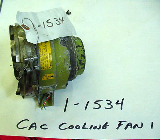CAC Cooling Fan 1 was recovered as a single unit. It was identified by tag as EG&G Rotron PN 034964, SN A02957, and Swissair ASN 0427, IDN 474986.