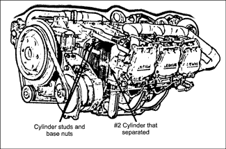 - The -inch studs and the ½-inch through studs of the number two cylinder failed in fatigue, and the number two cylinder of the left engine separated from the crankcase.